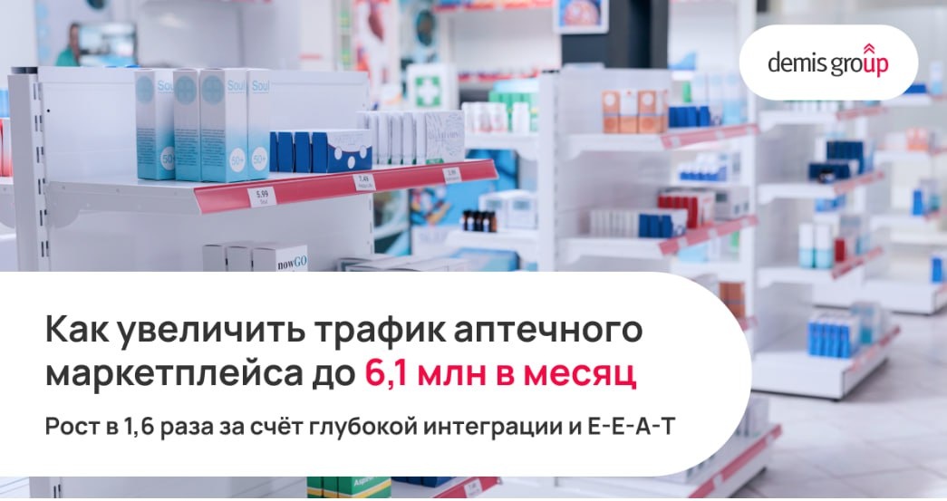 Как увеличить трафик успешного аптечного маркетплейса до 6,1 млн в месяц? 3,8 млн визитов в месяц — казалось бы, это уже отличный результат для аптечного маркетплейса. Но что если повысить планку? Даже в условиях высокой конкуренции и хорошо развитого сайта агентству удалось увеличить трафик в 1,6 раза. Как? Читайте в кейсе Demis Group.