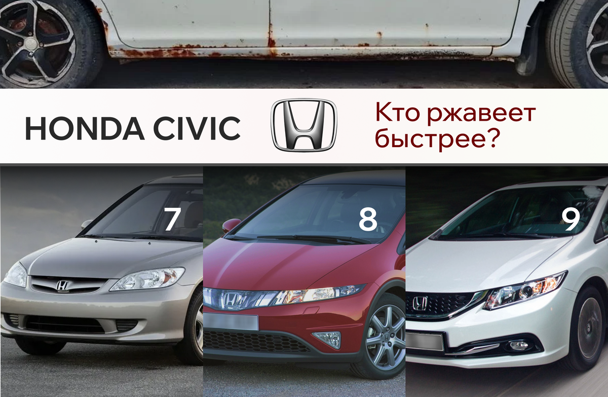 В этом случае имеет смысл оценивать поколение до 2015 года. Хотя если у вас есть антипримеры - допустим, Civic 2017 года, заржавевший к 25-му - добро пожаловать в комментарии!