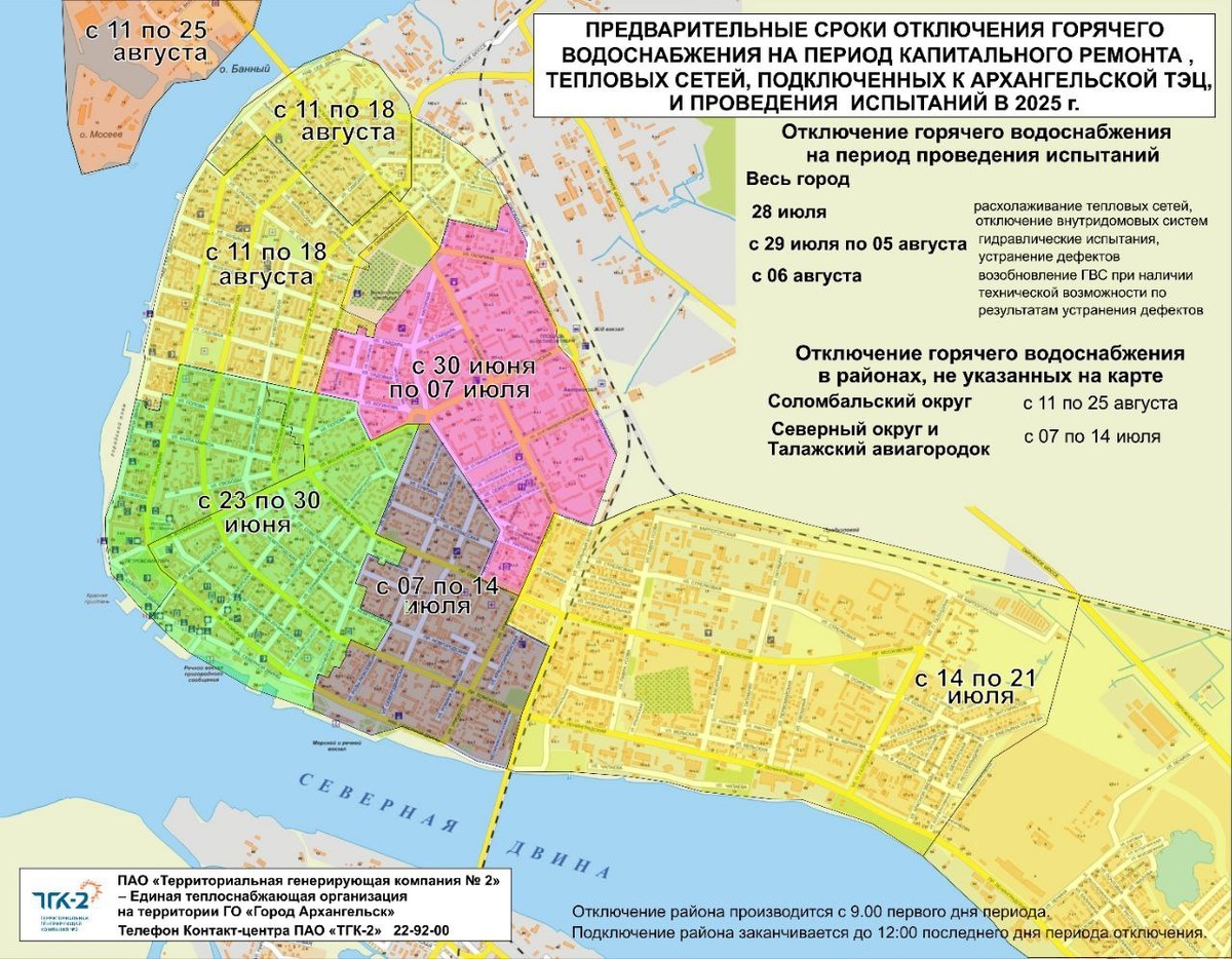 ❗️В Архангельске скорректировали график отключений горячей воды Сегодня администрация Архангельска опубликовала актуальный график отключения горячего водоснабжения по округам. В связи с поздними сроками завершения гидравлических испытаний и устранения обнаруженных дефектов на сетях, график плановых отключений был пересмотрен. Изменения коснулись центральных районов города.
