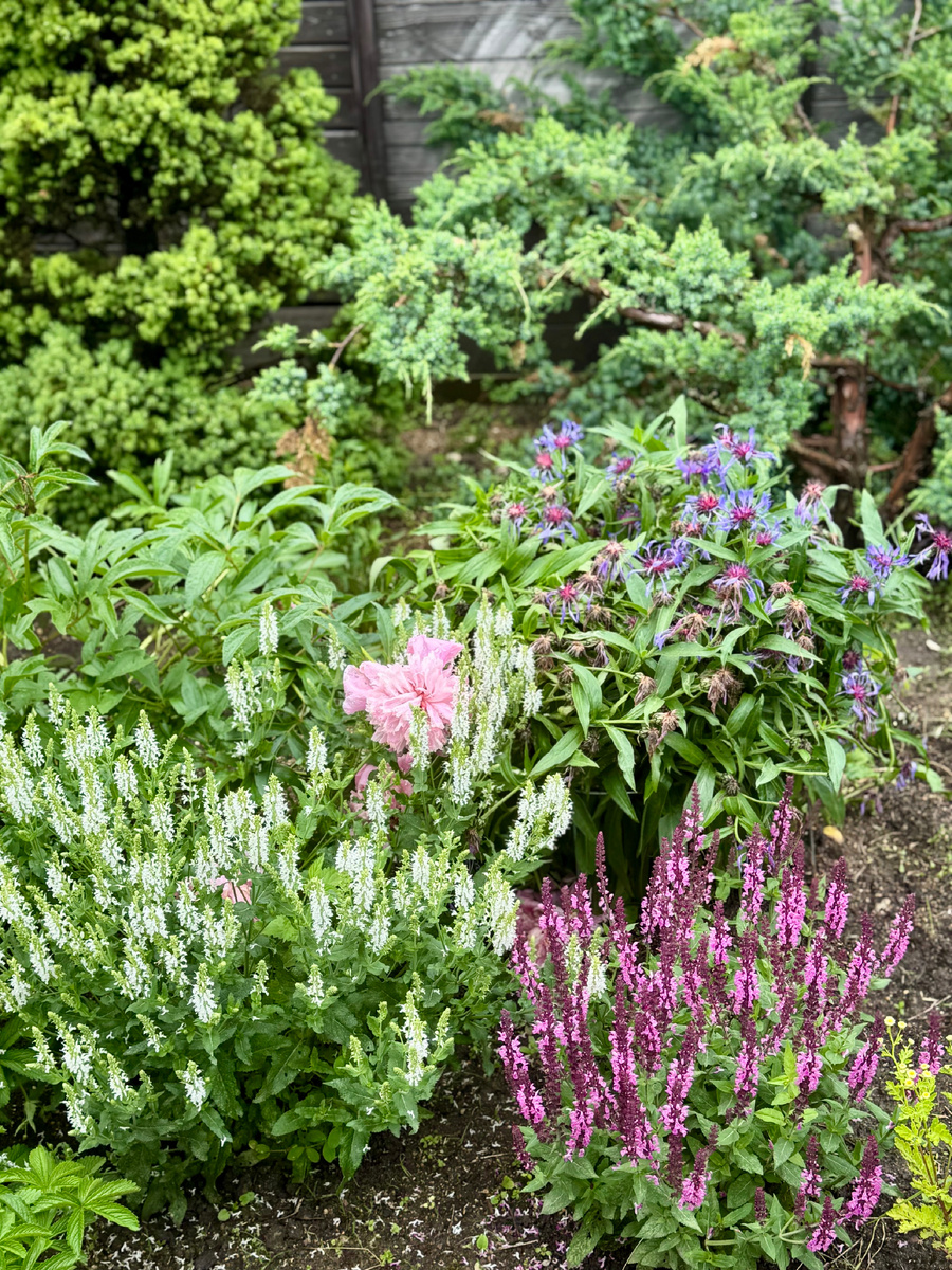 Здесь как в стройбате «копаешь отсюда и до обеда», только до конца сезона. Все время нужно что-то сажать, пересаживать, полоть, обрезать, обрабатывать… У меня уже очень сильно разрослись розы, превратившись в огромные кусты. А еще серьезно пострадали этой нестабильной зимой. И я даже не могу сказать сколько дней я их обрезала, казалось, что вечно. Вышла я из этой схватки, как из объятий стаи диких кошек - полностью порезанная исцарапанная, но очень довольная. Я это сделала! Ну и благодарное цветение не заставило себя ждать. Роз у меня, кстати, от 60 до 80, не могу посчитать 🤦🏻♀️