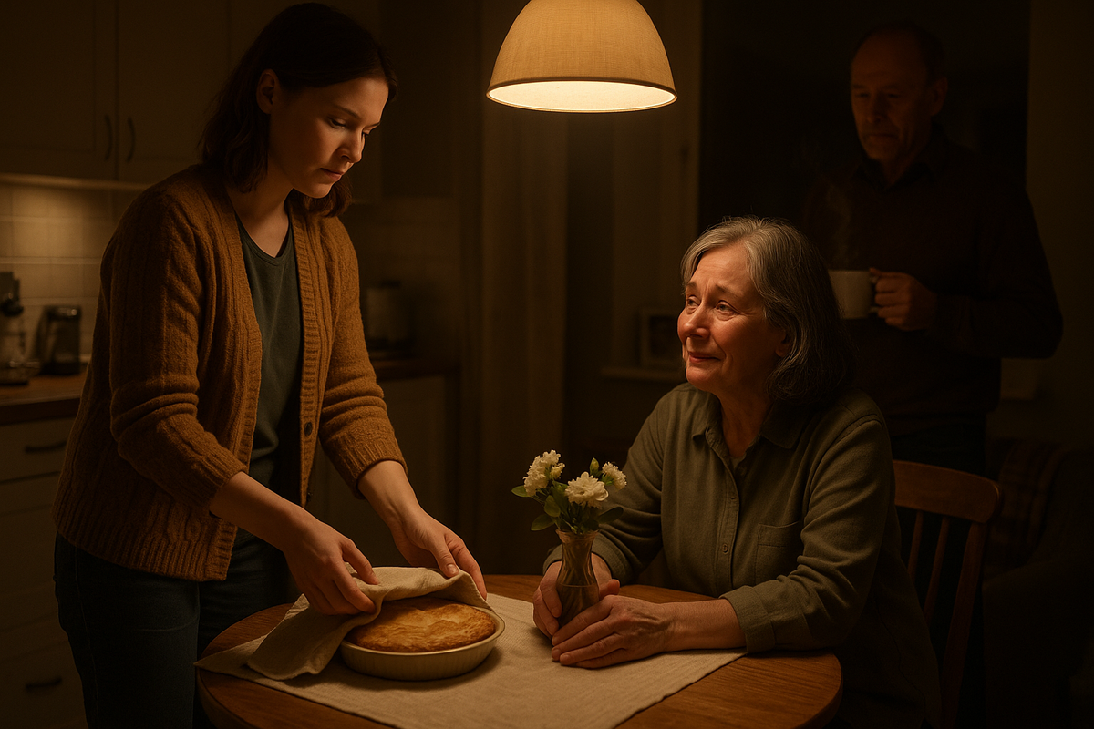 Я испекла пирог — маминым рецептом, с корицей и яблоком. Нарезала овощи. Разложила всё по тарелкам, даже вытащила бабушкины бокалы, те самые, «для праздника».