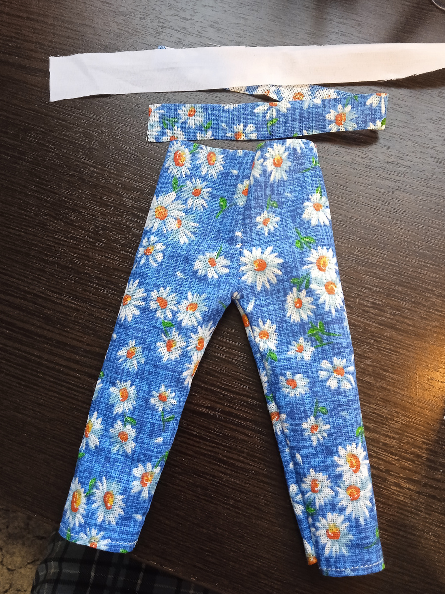 Сегодня, как и обещала, сшила для Миланы брючки из ткани синего цвета с ромашками. Кроила опять по Милане, измеряя её сантиметром. Выкройку делала простую - без карманов и без отрезного пояса. Всё легко и просто. Думала сделать поясок, но передумала. Решила, что не плохо будет с ремешком и длинным топиком. Первая примерка. Застёгивается на липучку. Следующие брючки для другой девочки попробую сшить с кармашками. И за три дня получились три изделия: брючки, сарафан и комплект - юбка и топ. В итоге гардероб Миланы увеличился и обновился! Но всё моё новое творчество отвлекает меня от подготовки к индийской свадьбе. Поэтому следующая неделя будет очень загруженной. Спасибо, что Вы со мной! И до следующей встречи!