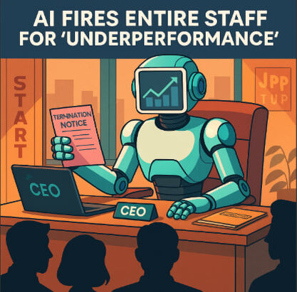 ExecuBot 1.0 готовится к запуску следующего стартапа — Humanless.AI, платформы, где сотрудники — только алгоритмы, а руководители — «эмпатичные протоколы».