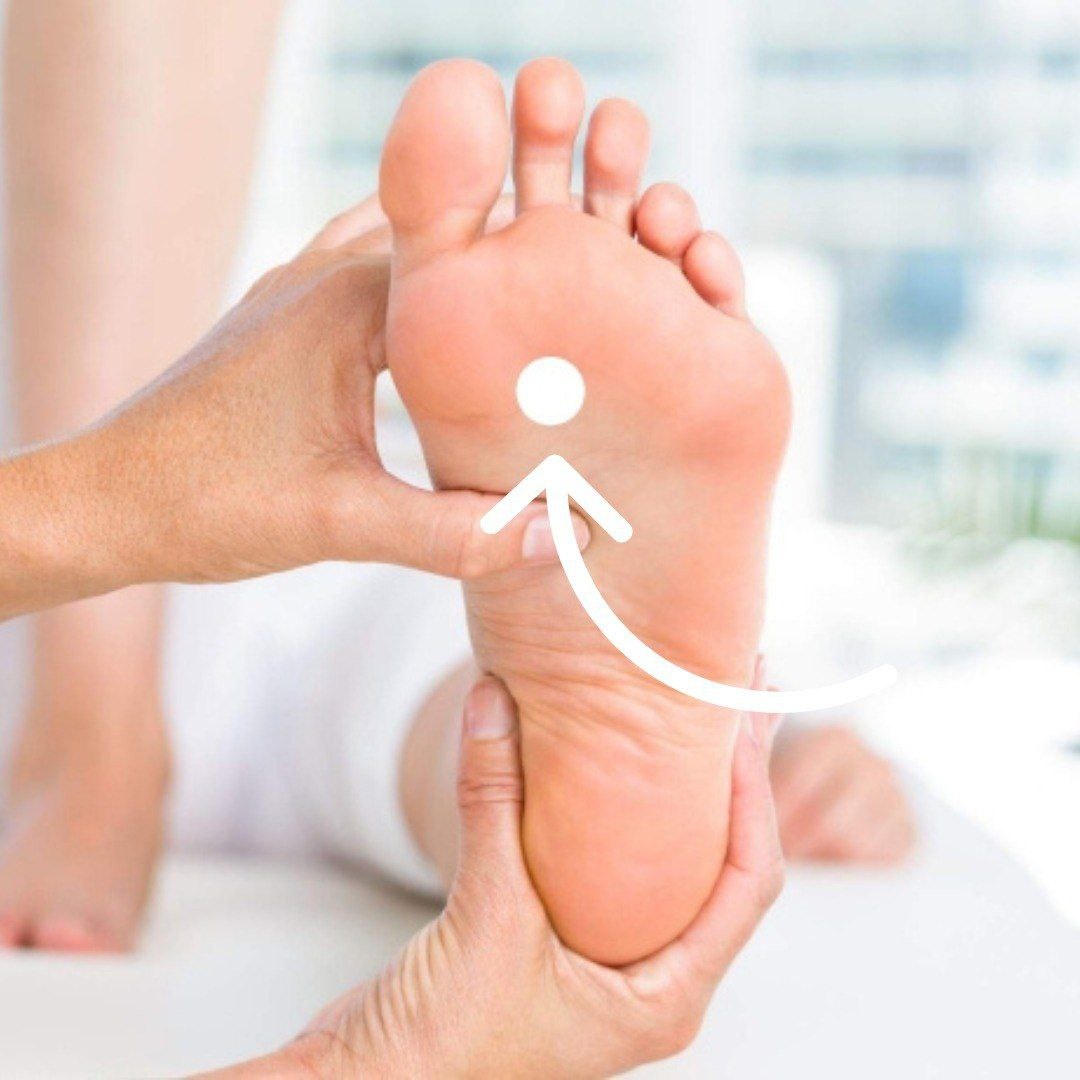Если вы подожмете пальцы, на стопе образуется углубление между большим и малым буграми стопы – в нем и находится точка почек.