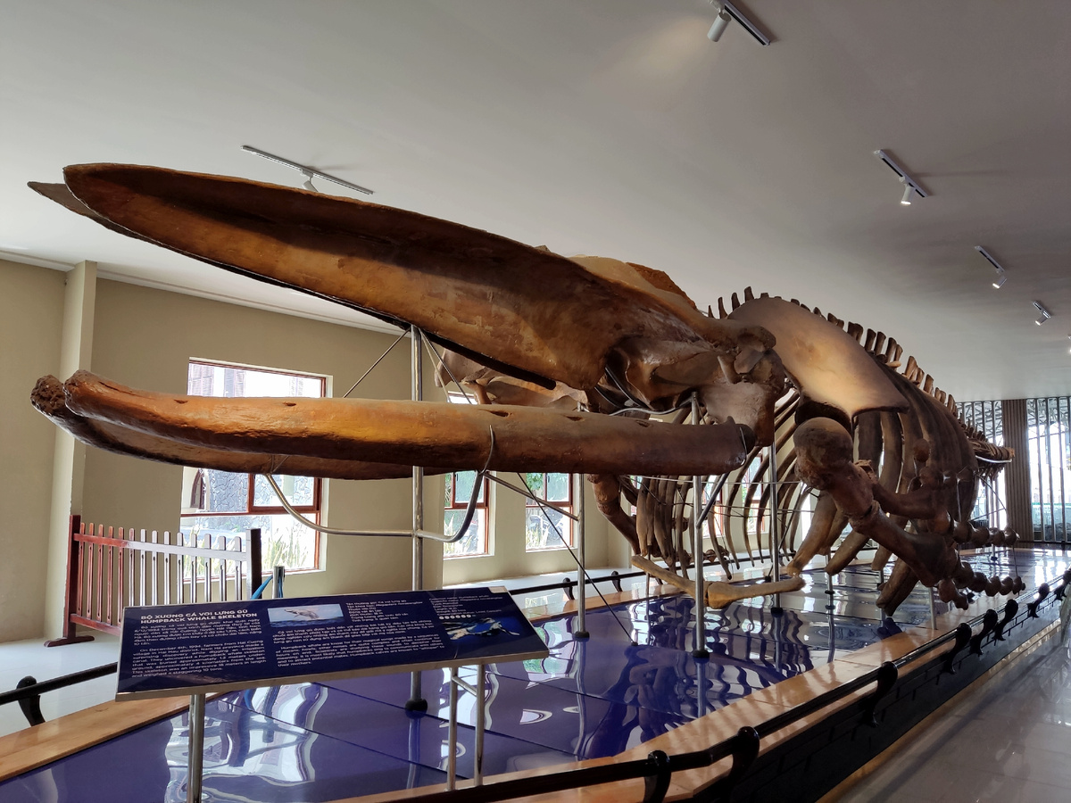 Институт и музей океанографии находится совсем недалеко от канатной дороги, ведущий в парк Винперл, но дважды побывав в этом районе, в него мы так и не зашли. Теперь же, когда мы посетили уже практически все достопримечательности Нячанга, а новых впечатлений по-прежнему хотелось, дошла очередь и до этого места, у которого, к слову, на картах довольно высокий рейтинг. Но, как оказалось, удивить оно может только в плохом смысле этого слова. Музей открыт на базе научного института океанографии, занимающего несколько зданий во французском колониальном стиле в непосредственной близости от порта Нячанга. Билет стоит 40 000 донгов (около 120 рублей). На входе посетителей встречает скелет 18-метрового кита-горбача, тушу которого выкинуло на берег в далёком 1994 году. Чуть дальше — несколько небольших бассейнов с затёртыми и мутными стёклами, сквозь которые практически не видно обитателей, и неухоженный вольер, в котором томится один большой крокодил. Поверьте, зрелище очень грустное. За волье