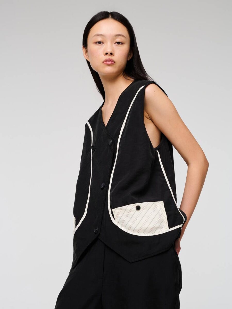 Двусторонний жилет от бренда LA VACA LOCA — эффектная модель с акцентом на индивидуальность и авангардный стиль