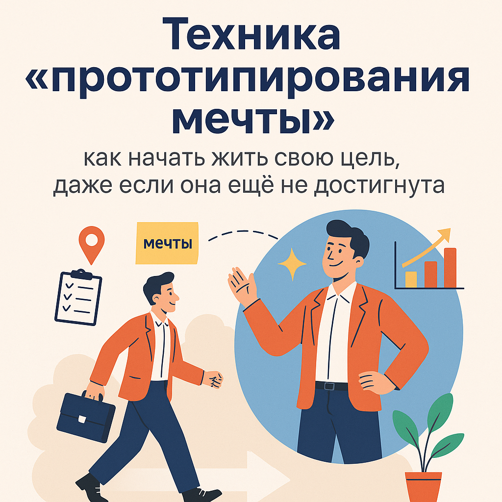 А что если вместо того, чтобы ждать, начать “как будто” уже живёшь в своей мечте? Это и есть суть мощной и очень простой техники — прототипирования мечты. Она помогает включить будущее в настоящем, запустить движение и обрести уверенность, даже если пока нет ни идеальных условий, ни ресурсов.