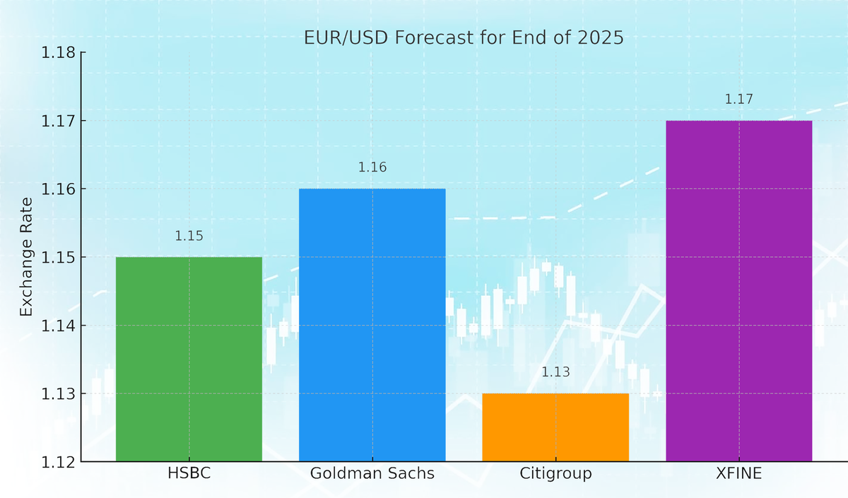 Курс евро/доллара (EUR/USD), начиная с апреля, уверенно удерживается выше 1.10 и на пике мая 2025 года достигал отметки 1.1570. Рост евро связан с ослаблением доллара, вызванным жесткой торговой риторикой администрации Дональда Трампа. Напряженность в отношениях между США и ЕС усилилась после угрозы ввести 50% тарифы на европейские товары. Хотя после телефонного разговора с Урсулой фон дер Ляйен крайний срок введения пошлин был отложен до 9 июля, участники рынка продолжают учитывать возможность эскалации торговой войны, что оказывает давление на доллар и поддерживает евро. Дополнительным фактором стал рост ожиданий рецессии в США и ослабление уверенности в экономической стабильности страны. В Европе, напротив, наблюдаются признаки оживления в Германии и Франции, а ЕЦБ пока не торопится со смягчением монетарной политики, что делает евро относительно привлекательнее. Крупнейшие банки и аналитические агентства начали пересматривать свои прогнозы. Так, HSBC повысил свой целевой ориентир по