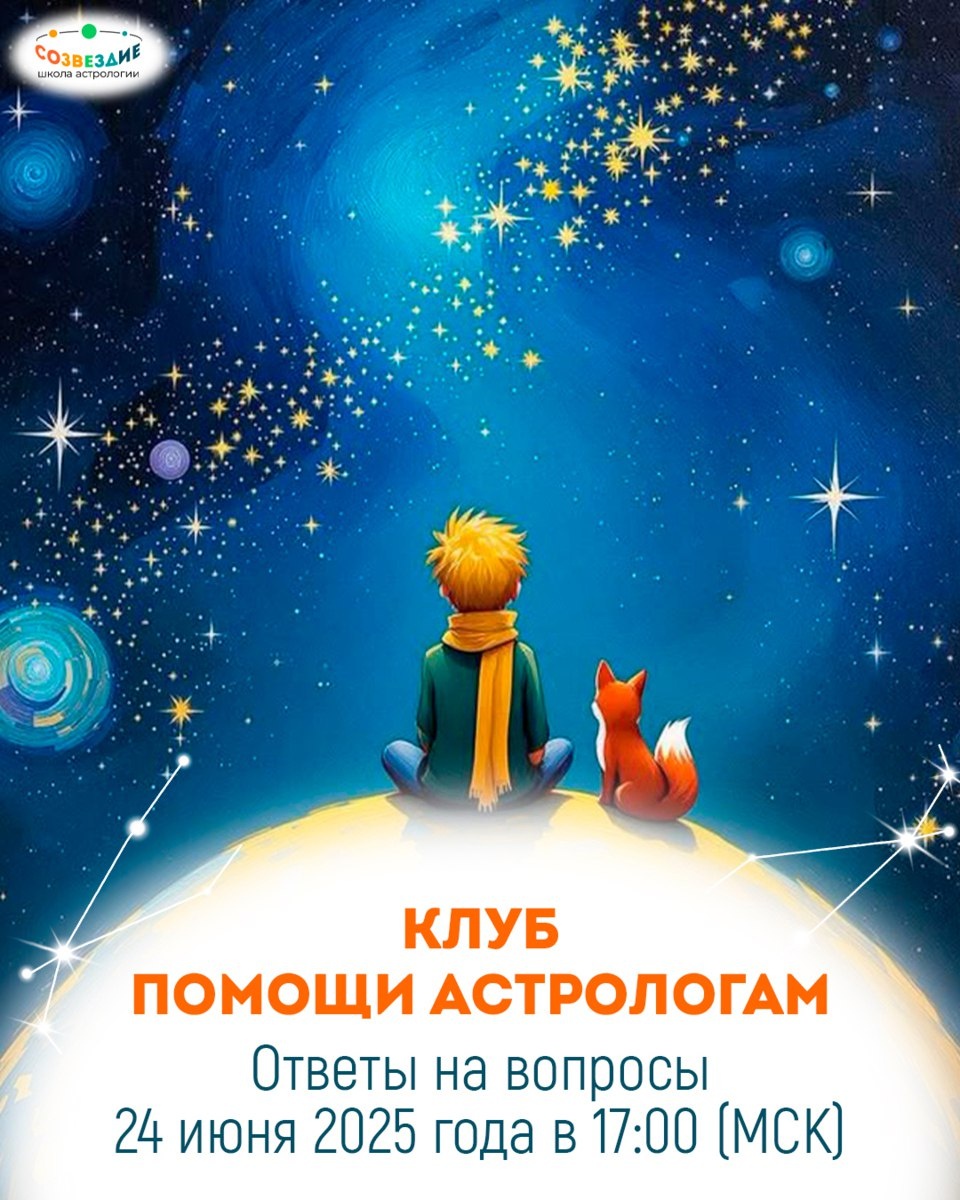 🌟✨ Звёзды не случайно собираются в созвездия! 🌌 Когда мы находим тех, кто разделяет наши страсти, цели и даже маленькие безумства, рождается магия. Клубы и сообщества — это острова вдохновения, где каждый находит поддержку, учится новому, вдохновляет других и растёт сам. Это место, где идеи превращаются в проекты, а одиночки становятся командой. Здесь вас понимают! 💫 А что, если ваше созвездие будет посвящено астрологии — древнему искусству, которое помогает расшифровать язык звёзд? 🌠 24 июня 2025 года в 17:00 (МСК) в нашем Клубе помощи астрологам состоится прямой эфир «Ответы на вопросы»! 🎉 Мы разберём ваши личные запросы по натальным картам: раскроем тайны гороскопов, поговорим о планетах, аспектах и попрактикуемся. 🌟 👉 Присоединяйтесь к Клубу, чтобы присутствовать на эфире! 🌙 Задавайте вопросы, ставьте лайки, делитесь в комментариях — что вас больше всего волнует в астрологии? 🌟 P.S. Даже если вы впервые слышите слово «асцендент» — это ваш шанс начать путешествие!