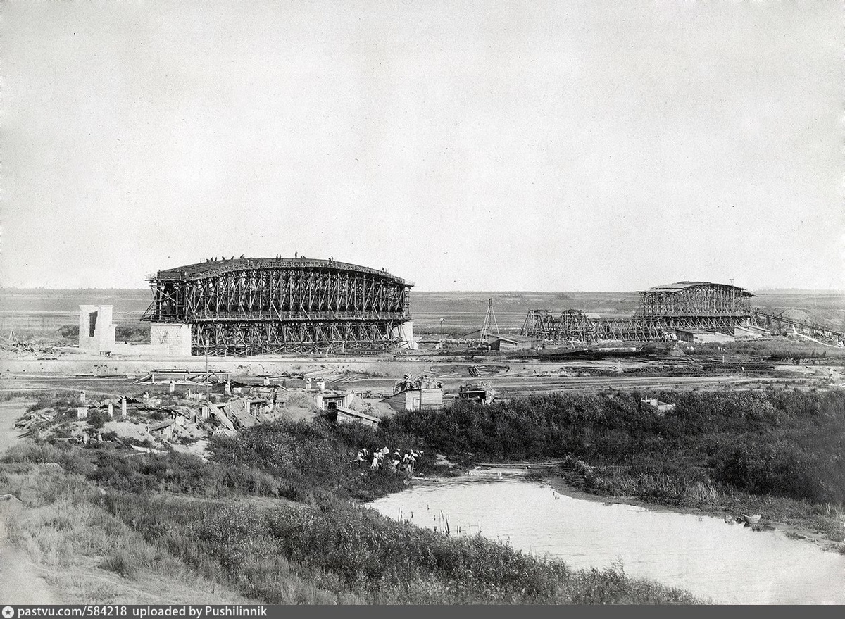 Вид сборки железнодорожного моста через р. Тобол 1894