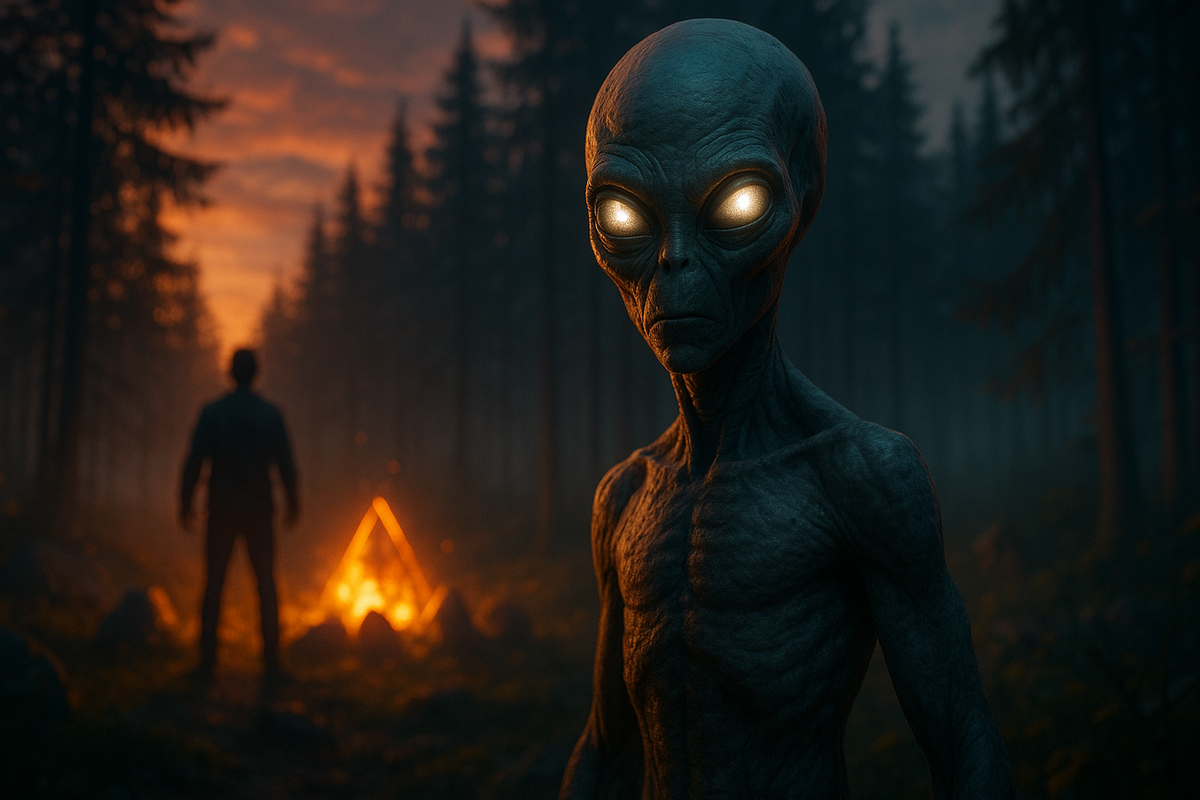 В ту ночь он услышал гул, похожий на далекий рев самолёта, и увидел низко парящий шар. Он бросился назад, но лес словно сомкнулся вокруг него.