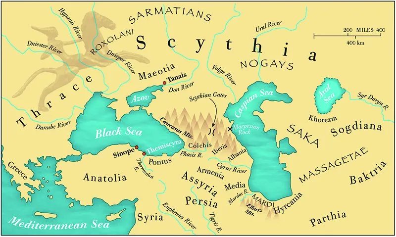 На юге Казахстана, к востоку от Каспийского моря, кочевал народ, известный как массагеты. Это были скифы, говорившие на языке, близком к индо-иранским языкам того времени, и часто взаимодействовавшие с более «цивилизованными» царствами и империями, с которыми сталкивались. Они славились своим умением ездить верхом и относились к лошадям почти духовно — часто хоронили их в украшенных одеяниях и с сокровищами.