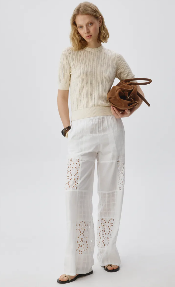 SELA Джемпер хлопковый с коротким рукавом ажурной вязки