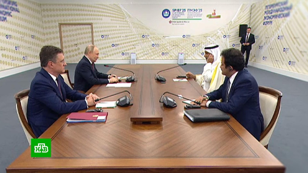 [ Смотреть видео на сайте НТВ ] Путин заявил, что Россия готова продолжать сотрудничество с ОПЕК. Генеральный секретарь ОПЕК Хайсам аль-Гайс во время встречи с Владимиром Путиным на полях ПМЭФ от имени организации поблагодарил российского лидера, а также вице-премьера РФ Александра Новака за поддержку стабильности мировых энергорынков в сложное время. Хайсам аль-Гайс, генсек ОПЕК: «Вы нас поддерживали в сохранении стабильности рынков в самые непростые времена за последнее время». Владимир Путин заявил, что Россия готова в будущем продолжать сотрудничество с ОПЕК. Президент также пригласил Хайсама аль-Гайса на Российскую энергетическую неделю, которая традиционно будет проводиться в Москве в октябре. Владимир Путин: «Я очень рад вас видеть и иметь возможность с вами сегодня обменяться соображениями, мнениями о том, как будет развиваться и наше сотрудничество, и ситуация на мировых энергетических рынках в это непростое, прямо скажем, время». Ранее сегодня Владимир Путин выступил на плена