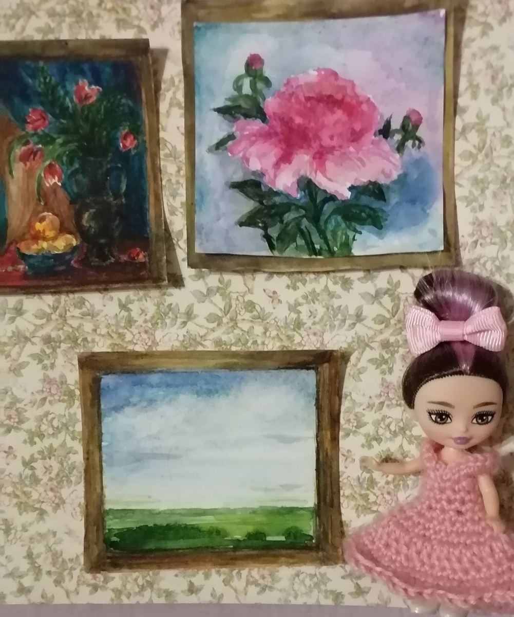Такой формат картин мне прям понравился: и рисуются проще, и польза есть - украшение кукольного интерьера)