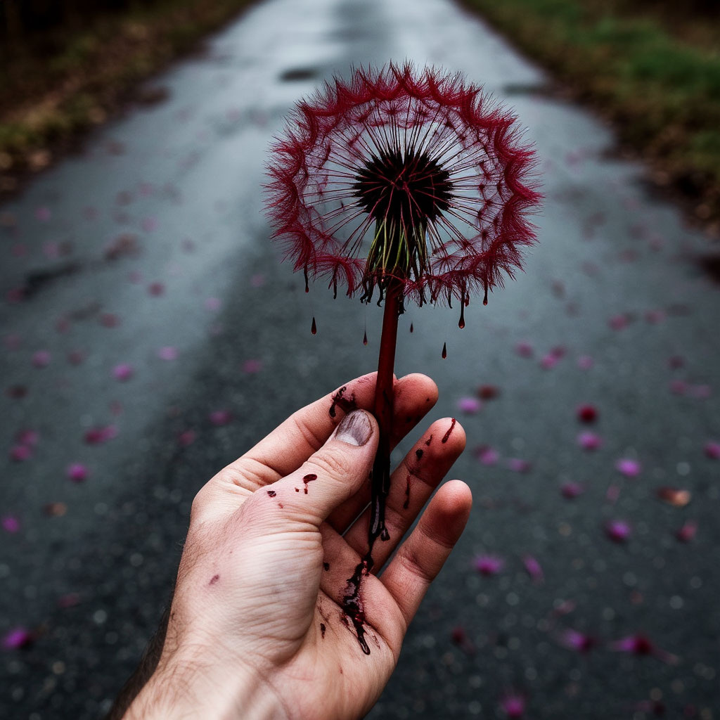 Он истекал кровью. Теплая струйка пульсировала в такт едва слышному сердцебиению, растекаясь по рубашке, смешиваясь с влажной землей и соком раздавленных цветов. Слабость накатывала волнами, унося с собой последние остатки физического мира. Но сознание... сознание горело яростно, отравленное болью, ядом одуванчиков и безумием, которое теперь стало его единственной реальностью.