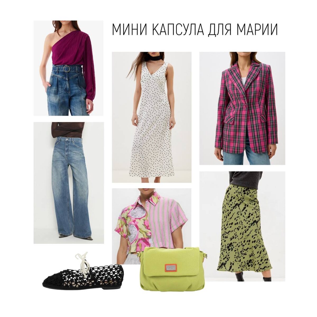 Девочки, как и обещала — делюсь деталями того, как создавала капсулу для Марии в прямом эфире! Мария — фотограф, поэтому капсула получилась творческой, но с чёткой структурой: ✔ Акцент на фактуры и интересные силуэты ✔ Удобные вещи, не сковывающие движения ✔ Несколько ярких акцентов для самовыражения Важный нюанс: капсула идеально подойдет девушкам с равновесной фигурой: - «песочные часы» - или «прямоугольник» А вот «грушам» и «перевернутым треугольникам» такие сочетания могут: ✖ Визуально усилить диспропорции ✖ Добавить лишние сантиметры и килограммы Хотите разбор под ваш тип фигуры? Спрашивайте в комментариях — расскажу, как подчеркнуть достоинства и скорректировать то, что не нравится P.S. Запись эфира тут → Там много лайфхаков, которые не вошли в этот пост!