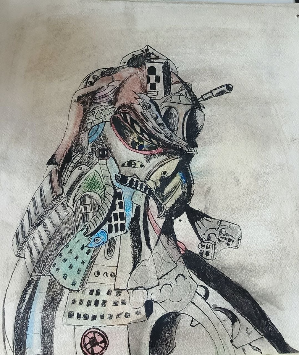 Данная картинка была нарисована моим сыном 17 лет назад. Ему тогда было 14 лет. Он с детства мечтал быть архитектором и ходил в простенькую студию дизайна в Дом юного техника у нас через дорогу. Поступить в политехнический смог, но ветер свободы снес его после первого курса. Сейчас мальчик вырос работает в Со.и в дорогом ресторане, то есть, все норм. И вот неожиданно нашлась эта картина, под слоем пыли где то наверху, мы уж и забыли, что такая была. Вроде ничего необычного,но детализация прям цепляет. Нарисована на плотной бумаге, слегка потемнела. Так вот, кто угадает ,как называется произведение, получит тысячу рублей.