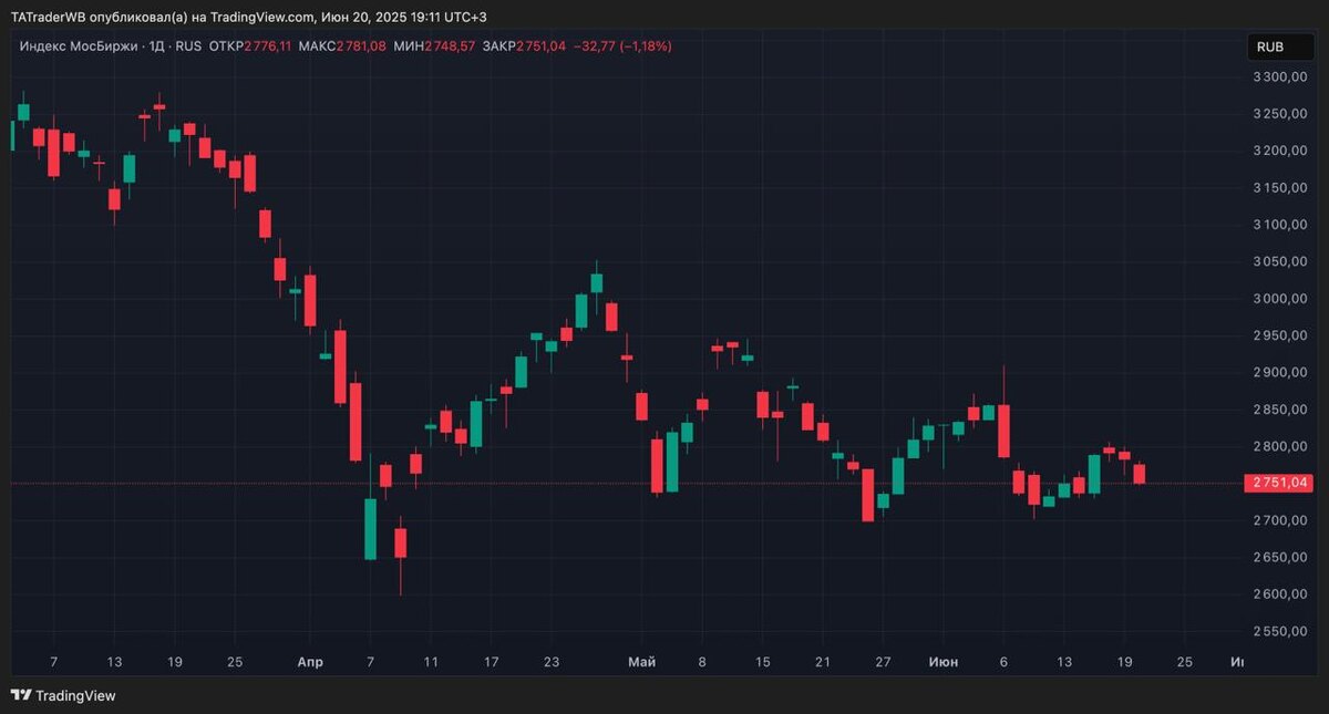🔽 ПОЛИЛИСЬ! ДОПИНГ НЕ СПАСЕТ! 👉 Сегодня индекс стоял в боковике, пока нефть не начала падать + окончание форума добавило негатива. В итоге закрылся индекс шортовой, красной свечкой, распродаваемой под самое закрытие. Причем нефть сегодня ОСОБО сильно не падала, а значит вчерашнее небольшое падение рынка было все таки НЕ откатом, для продолжения роста, а слабостью, которую сегодня индекс и подтвердил. 📝 Поэтому исходя из шортового закрытия вывожу, что далее скорее всего будет падение по индексу в сторону 2720 - 2730. Однако скорее всего придет туда индекс не по прямой, а через легкий отскок, следовательно в понедельник можно будет посмотреть шорт от сильных уровней, если выходная сессия в Т ничего сильно не изменит. Всем сладких выходных! 🤝