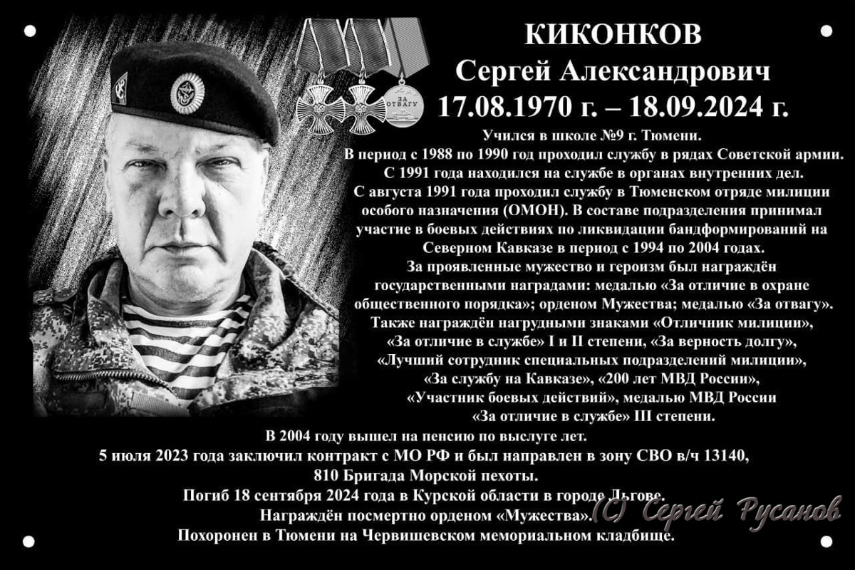 Сегодня в тюменской школе № 9 в поселке Парфеново вспоминали двух своих выпускников, погибших в 2024 году при исполнении воинского долга во время проведения СВО: Сергея Киконкова и Азата Нигматуллина, открывая им Памятные мемориальные доски.