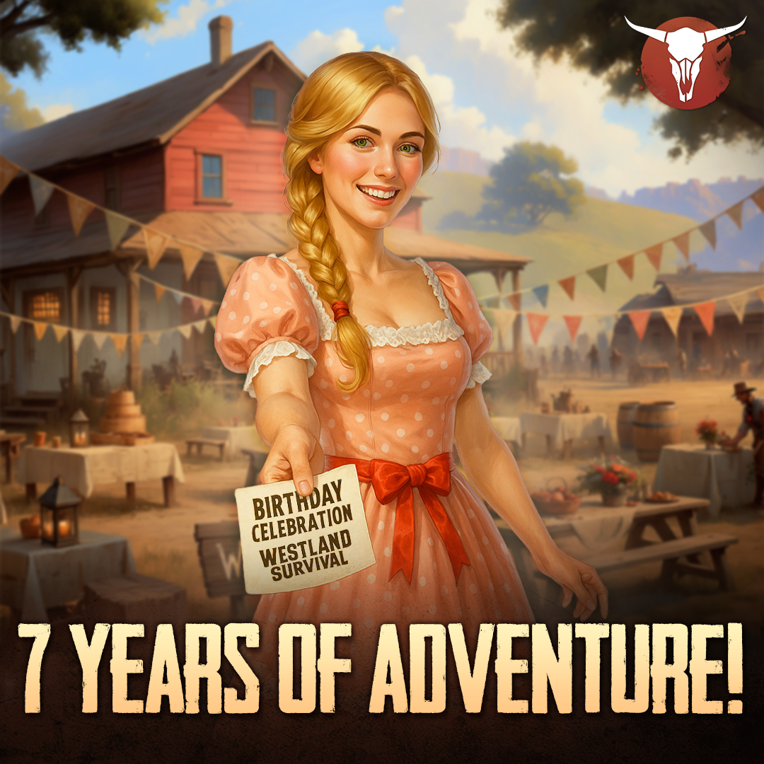 🎉 Покажите нам свою любовь @everyone — отправьте свои поздравления с днем рождения и не забудьте указать свой игровой идентификатор! Самые искренние, веселые или просто легендарные сообщения **выиграют премиумный боевой пропуск для события Season of Celebration!** Ссылка на официальный ресурс: 🔻 **🎂 Westland Survival is turning 7 soon!** Can you believe it? Seven wild, thrilling, guns-blazing years in the Wild West! 🎉 Show us your love @everyone — send in your birthday wishes and don’t forget to include your in-game ID! The most heartfelt, fun, or downright legendary messages will **win a premium Battle Pass for Season of Сelebration event!**