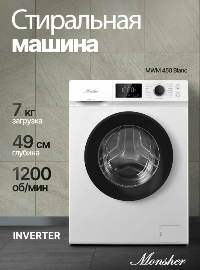 🌟 Стиральная машина Monsher MWM 450 Blanc — умная забота о вашем белье