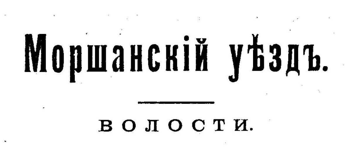 Михайловская волость Волостной старшина Зиновей Анисимов Тарабрин, писарь Михаил Степанович Коновалов. Питерская волость Волостной старшина Иван Николаевич Конопкин, писарь Петр Семенович Перфилов. Коршуновская волость Волостной старшина Николай Ксенофонтович Юдин, писарь Григорий Дмитриевич Харламов. Моршанская волость Волостной старшина Николай Иванович Шубин, писарь Иван Васильевич Глебов. Мутасьевская волость Волостной старшина Михаил Казьмич Девятов, писарь Сергей Петрович Алексеев. Серповская волость Волостной старшина Яков Осипович Шумилин, писарь Евсевий Дмитриевич Харламов. Смирновская волость Волостной старшина Филипп Харламович Козлов, писарь Василий Ильич Серемягин. Рыбинская Волостной старшина Василий Иванович Крохин, писарь Григорий Дмитриевич Вязовкин. Черкинская волость Волостной старшина Илья Яковлевич Савельев, писарь Ефим Сергеевич Харламов. Островская волость Волостной старшина Тимофей Ефимович Швецов, писарь Василий Евгениевич Модестов. Алгасовская волость Волостн