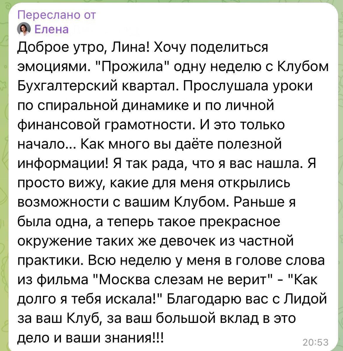 А что вы пропускаете? 🤔 Приятно получать такие отзывы от тех, кто совсем недавно оказался в нашем клубе👆 Сегодня мы созванивались с теми клубчанами, кто с нами с самого основания Бухгалтерского Квартала. И какого было наше удивление, когда мы узнали что даже не все старожилы знают, СКОЛЬКО полезного материала находится в библиотеке клуба. 🤨 Поэтому мы решили исправить эту ситуацию и пишем, что вам точно стоит посмотреть, 👀если у вас оформлена подписка или вы планируете её оформить. 😏 Вот малая часть того, к чему у вас будет доступ на время подписки: 🔸 «Личные финансы» от Лины Залевской — пошаговая система выхода из финансовой ямы: таблички, копилки, планирование. 🔸 «Управление личными финансами» от Лины и Лидии — психология денег, баланс, стратегии роста. 🔸 «Бухгалтер в порядке» — всё по полочкам: документы, стол, файлы, голова. 🔸 Как вести соцсети — без инфоцирка: сторис, посты, клиенты. 🔸 Спиральная динамика — как продвигать себя без отторжения, через понимание кл