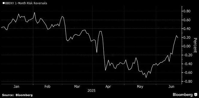 Масштабное падение курса доллара после введения президентом Трампом ответных пошлин в начале апреля, возможно, наконец-то исчерпало себя, по крайней мере, в ближайшей перспективе. Индекс доллара BBDXY, рассчитываемый Bloomberg (от классического индекса доллара отличается более широкой корзиной валютой), вырос почти на 0,6% с прошлой пятницы, и теперь он на пути к лучшему недельному результату почти за четыре месяца. Доллар получил поддержку от ястребиных комментариев председателя ФРС Джерома Пауэлла ранее на этой неделе, перед небольшим сокращением роста в четверг и пятницу. Даже несмотря на риски неминуемой атаки США на Иран и слова Кристофера Уоллера из ФРС, который заявил, что центральный банк США может снизить ставки в июле, доллар в основном сохранил свою силу. События, похоже, указывают на то, что пик медвежьего тренда доллара, возможно, уже позади, и в ближайшие недели наступит период относительной стабильности — или даже скромного подъема. Участники последнего опроса Bloomberg