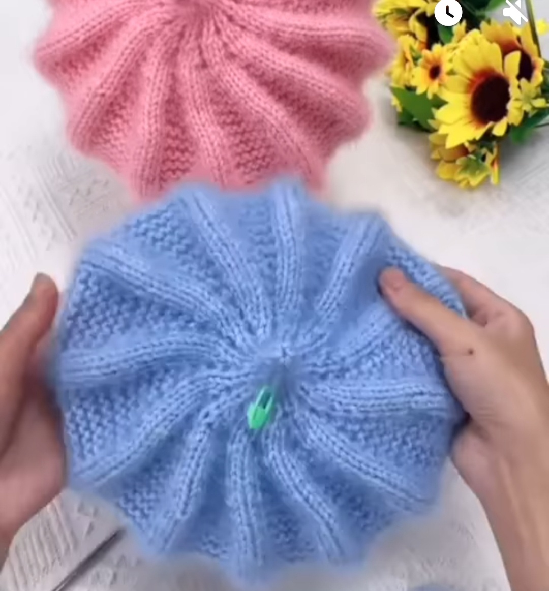 И так до 8 петель по ряду , стягиваем 8 петель ,берет готов.