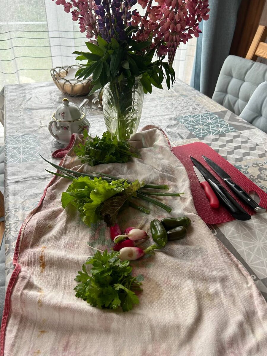 Здорово, когда начинаешь собирать всё своё! 🥬🥗 Жалко холодно, а то бы и огурцы бы уже были! 🥒🥶 ❓Как там у вас? Что уже собираете?! Красотой тоже делитесь!🌸🌸🌸