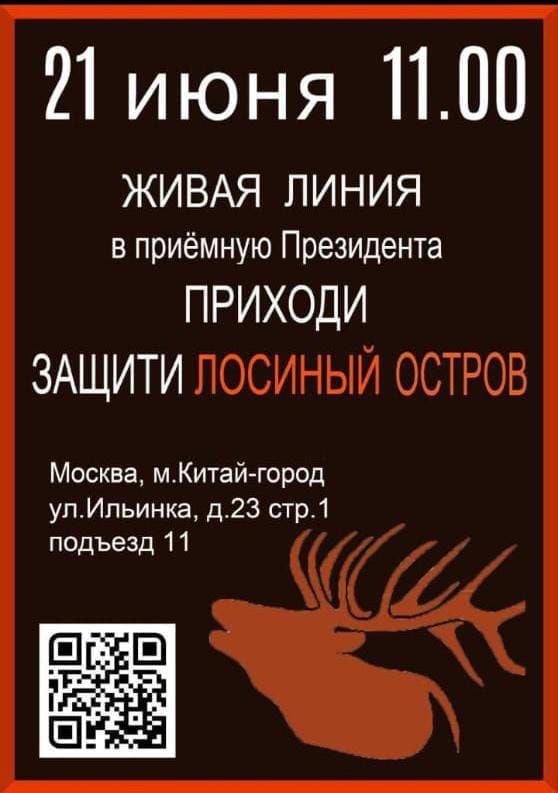 ПОМОГАЮ ИНФОРМАЦИОННО! 📣📣📣📣📣 🟥 ЛЮДИ! 🟥 Жители Москвы, Подмосковья и не только! ❌️ Чиновники хотят уничтожить заповедник "Лосиный остров", важно всем кто рядом включиться в спасение этого уникального места! ✅️ ЗАВТРА! В СУББОТУ! 🟥 21 июня 2025г, в 11.00 ПРОЙДЕТ ЖИВАЯ ЛИНИЯ В ЗАЩИТУ ЗАПОВЕДНИКА! ✊️Приезжайте подать персональные обращения к Президенту! Возьмите паспорт! 🏢 Москва. Улица Ильинка, д. 23 с1, метро Китай-Город Чтобы прекратить экспансию на заповедные земли Лосиного Острова, а также обращения по отмене закона №27 от 13.11.2024 г. "Об охране и использовании зелёного фонда в городе Москве" и Постановления от 27.12.2024 г. №3160-ПП "О преобразовании особо охраняемых природных территорий регионального значения города Москвы в особо охраняемые зелёные территории города Москвы" 🌲🌲🌲Москвичи, жители Подмосковья! Люди, неравнодушные к происходящему сокращению площадей зеленых насаждений, парков и лесов Москвы и Подмосковья. Люди, верящие в возможность сохранения окруж