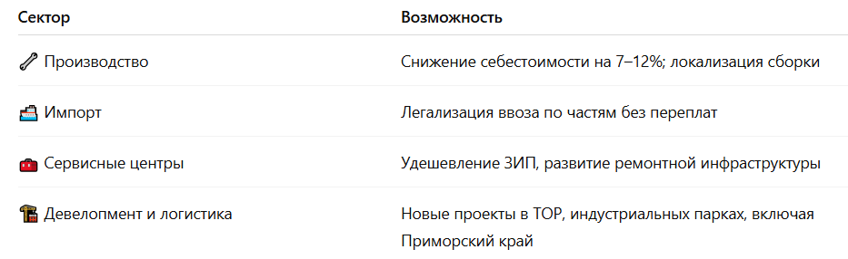 С 1 июля 2025 года в рамках Евразийского экономического союза (ЕАЭС) вступает в силу решение Совета ЕЭК об установлении нулевых ввозных таможенных пошлин на компоненты и комплектующие для ручного электроинструмента. Льготный режим будет действовать до конца 2029 года. Это не просто техническое изменение — это важный сигнал для производителей, импортеров и логистов, особенно в регионах с промышленным и логистическим потенциалом, таких как Приморье и весь Дальний Восток. Условие: комплектующие должны использоваться для внутрисоюзной сборки или переработки. Приморье — идеальное место для: Пример: китайская деталь → Владивосток → финальная сборка → Казахстан/Беларусь без пошлин. Нулевые пошлины на электроинструмент — это шанс для российского и регионального бизнеса снизить издержки, легализовать логистику и расширить экспорт. Это не просто льгота, а “зелёный коридор” для тех, кто хочет производить в России — особенно на Дальнем Востоке.