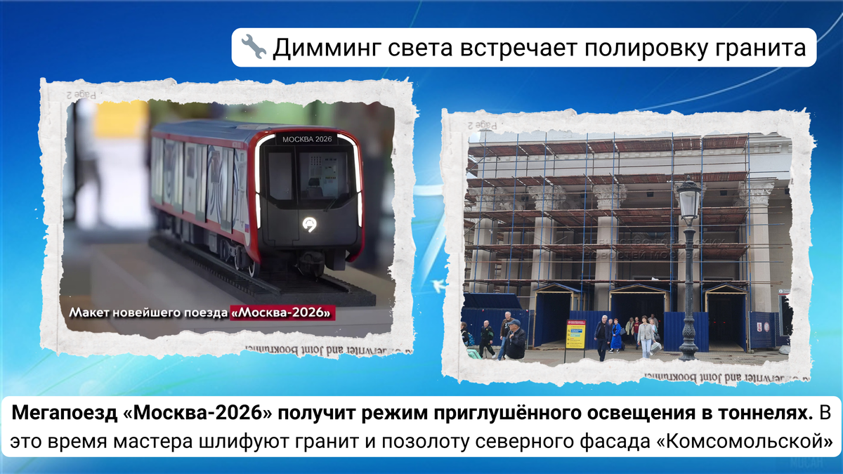 В раннем выпуске за 24 июня 2025 года, по традиции, обсуждаются актуальные аспекты развития комплексной инфраструктуры Москвы (КИМ). Мы снова рассказываем просто о том, как меняется наш город и что это значит для нас с вами. На этот раз поговорим о новых составах "Москва-2026" и обсудим реконструкцию северного вестибюля станции "Комсомольская".