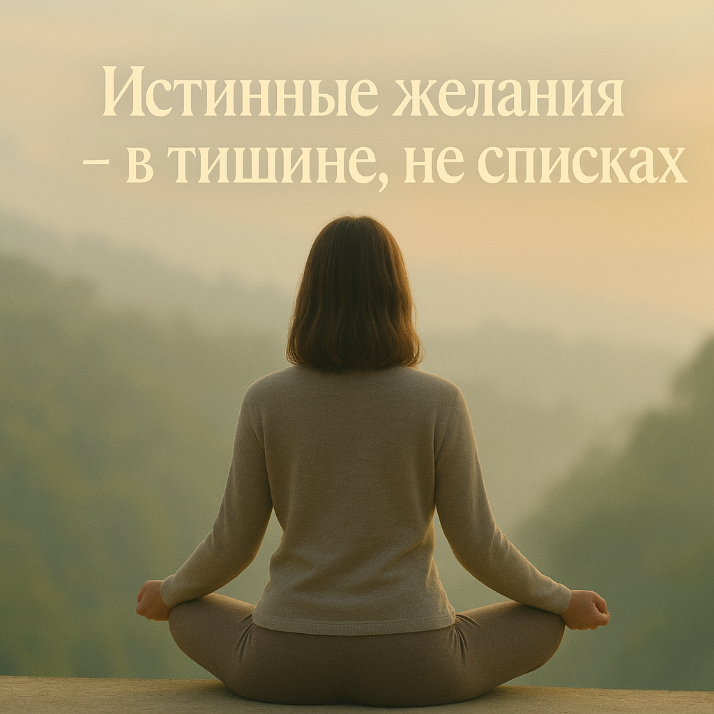 Иногда нам кажется, что мы точно знаем, чего хотим. Новые цели, списки, дедлайны. “Хочу заработать больше”, “переехать”, “похудеть”, “успеть всё”. Но это — шум. Очень часто — чужой. Навязанный, модный, логичный. Но не твой. Чтобы понять, чего ты действительно хочешь — нужно замолчать. Не для всех — просто. Но тишина — это инструмент. Это дверь. Иногда я сажусь и просто закрываю глаза. Без мантр, без правильной позы. Просто — чтобы выключить поток. Мысли приходят и уходят. А потом вдруг — становится спокойно. И из этого спокойствия всплывает что-то простое. Честное. Не глобальное “стать кем-то”, а, например: — хочу жить у моря — хочу высыпаться — хочу просто тишины, без вины И это не “цель”. Это истинное желание. Оно не требует усилия, оно не сдавливает. Оно просто есть. И, что удивительно, часто именно оно сбывается легко. Истинные желания чувствуются телом: — спокойствие — лёгкость — ощущение “вот оно, моё” А не страх, напряжение и вечный самоконтроль. Чтобы услышать себя — нужно дать