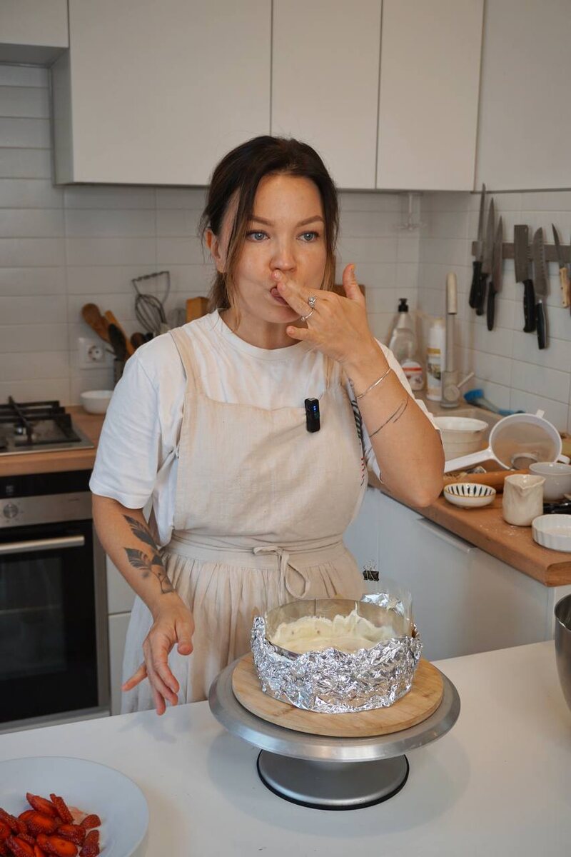 Аидочка пришла в кадр мне помогать раскатывать коржи и мы вместе повеселились.