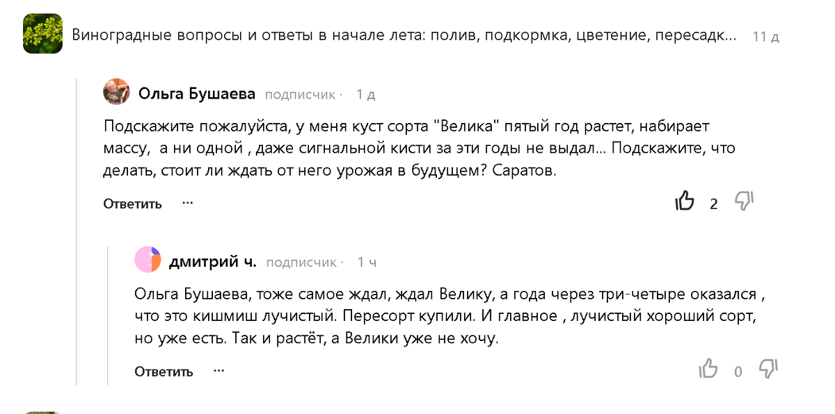 Подскажите пожалуйста, у меня куст сорта "Велика" пятый год растет, набирает массу, а ни одной , даже сигнальной кисти за эти годы не выдал... Подскажите, что делать, стоит ли ждать от него урожая в будущем? Саратов.
