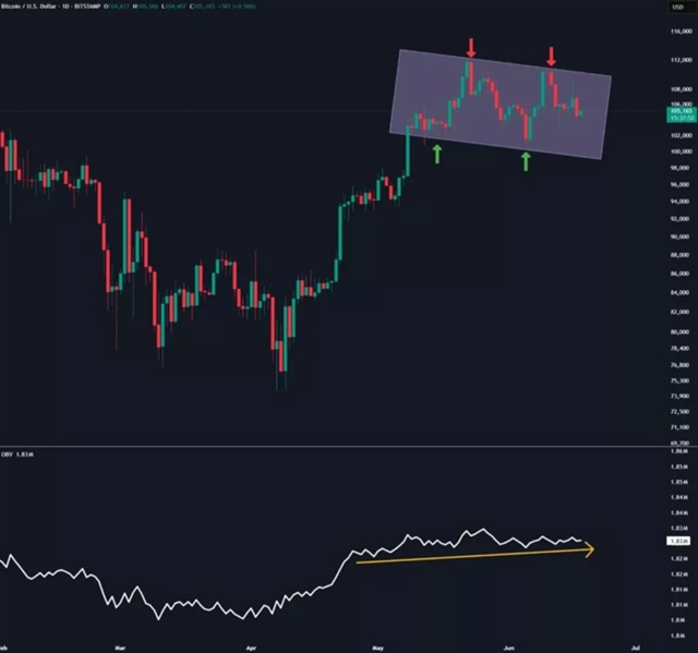 Представьте: биткоин, уже достигший впечатляющих высот, застрял в боковом движении. Цены топчутся на месте, а инвесторы нервно поглядывают на графики. Но под поверхностью тихой воды может копиться настоящая буря покупательского спроса. Именно на это сейчас указывает ключевой индикатор – On-Balance Volume (OBV), рисуя картину потенциального мощного роста биткоина до впечатляющих $130 000-135 000 уже в текущем, III квартале. Как отмечает внимательный аналитик Кас Аббе, несмотря на внешнюю консолидацию первой криптовалюты, ее внутренние метрики говорят о готовящемся рывке.