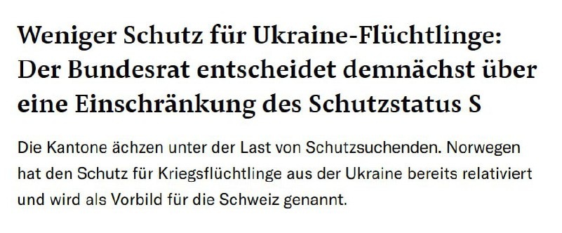 В Швейцарии предлагают отменить статус беженцев для украинцев, сообщает издание NZZ
