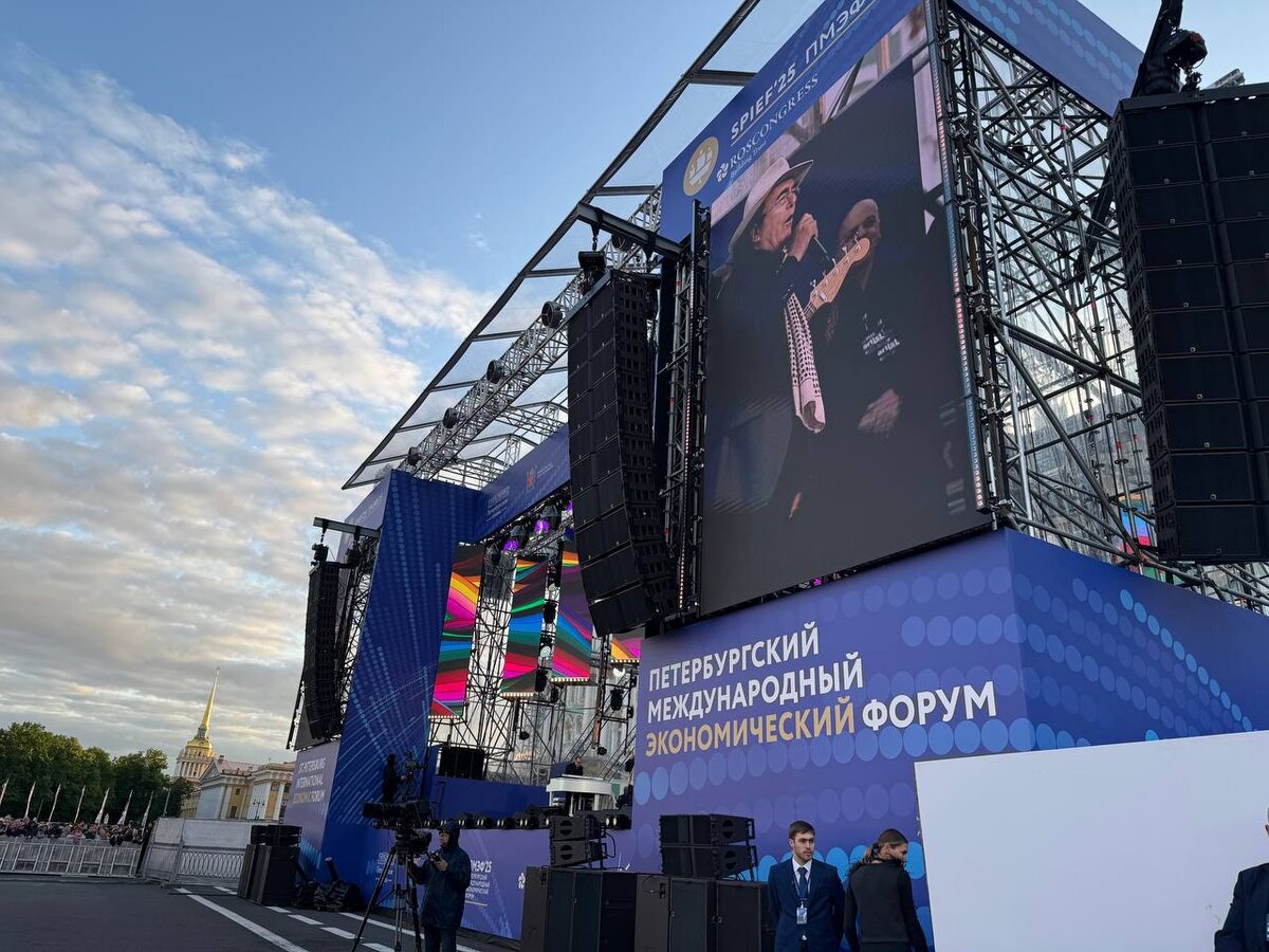А на Дворцовой проходит концерт «В ритме лета» Он тоже приурочен к ПМЭФ. Название, конечно, не вполне соответствует погоде, но музыканты тут не при чем. Честно говоря, на многих частных вечеринках ПМЭФ состав получше, чем у этого концерта. «Комната культуры», Женя Трофимов, Аль Бано… На Дворцовой выступали артисты и поизвестнее. Подпишись на Комсомольскую правду: СПб — отдай свой буст нам
