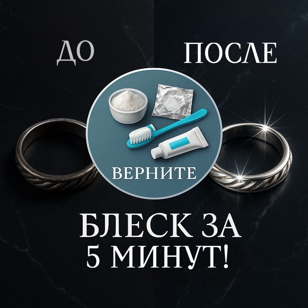 Потемневшее серебро — не повод для расстройства и тем более не причина нести украшения в ювелирную мастерскую. Вернуть изделиям первоначальный блеск можно подручными средствами, которые есть на каждой кухне. Рассказываем о трех самых эффективных способах очистки серебра, которые работают даже с черненными и позолоченными изделиями. Что понадобится: - 1 литр воды - 1 столовая ложка соды - Кусок алюминиевой фольги - Кастрюля Пошаговая инструкция: 1. Застелите дно кастрюли фольгой блестящей стороной вверх. 2. Налейте воду, добавьте соду и доведите до кипения. 3. Опустите серебряные изделия в кипящий раствор на 30 секунд — 3 минуты (в зависимости от степени загрязнения). 4. Промойте под холодной водой и протрите мягкой тканью. Почему работает: При контакте с алюминием происходит химическая реакция, которая восстанавливает серебро. Важно! Не подходит для изделий с жемчугом, янтарем и другими органическими вставками. Что понадобится: - Белая зубная паста (без абразивных част