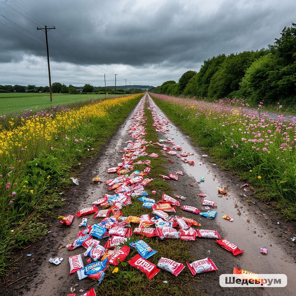 Следующий фантик от малюсенькой шоколадки. Это с первого настоящего свидания. Парнишка был жадный, охочий до обжиманий и моложе ее. Она долго выпрашивала у него шоколад и попить. Он вынул из заднего кармана брюк растаявший шоколад в порванной упаковке и отдал ей. Шоколад был противным на вкус, отдавал нафталином и лесными клопами.