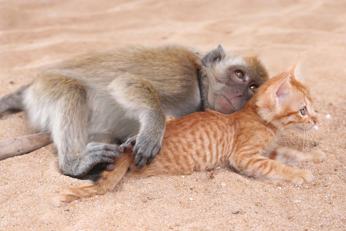 В далёкой стране, где солнце всегда светило ярко, а небо было голубым, жили-были кошки и обезьяны. Они были соседями и часто проводили время вместе, но однажды между ними вспыхнул спор, который перерос в настоящую битву. Всё началось с того, что кошки приготовили на обед вкусное картофельное пюре. Аромат блюда разнёсся по всему лесу, и обезьяны не смогли устоять перед соблазном. Они пришли к кошкам и попросили поделиться пюре, но кошки отказались. Обезьяны были очень голодными и решили забрать пюре силой. Кошки не собирались сдаваться без боя. Они были храбрыми и умелыми воинами, и вскоре началась битва. Обезьяны бросались бананами, а кошки выпускали свои острые когти. Но ни одна из сторон не могла победить. Вдруг, посреди битвы, одна из кошек придумала хитрый план. Она предложила обезьянам сыграть в игру: кто первым лопнет мыльный пузырь, тот и получит пюре. Обезьяны согласились, и кошки начали дуть мыльные пузыри. Игра была увлекательной, и вскоре обезьяны забыли о своём голоде.
