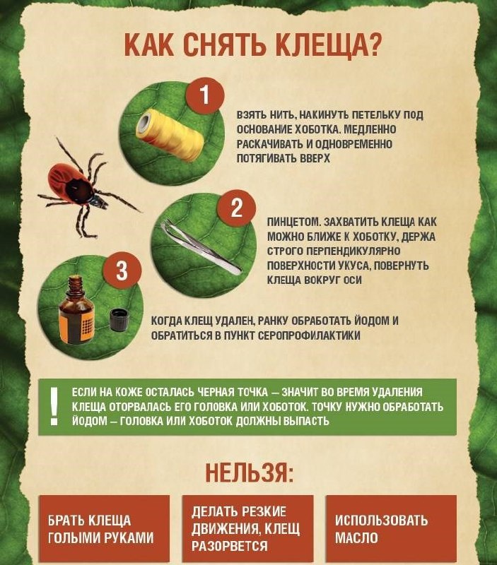 ❗️ВНИМАНИЕ! КЛЕЩИ! Почувствовать, как клещ ползёт по коже и прокусывает её, практически невозможно. Поэтому присосавшийся клещ способен оставаться незамеченным и питаться кровью жертвы в течение нескольких суток. За это время он может передать вирусы и бактерии, многие из которых несут серьёзную угрозу здоровью. Опасность представляют именно присосавшиеся клещи. Пока паразит ползает по телу, он не может ничем заразить свою жертву. Место для укуса кровосос выбирает тщательно, и в поисках подходящего участка может исследовать кожу несколько часов. Чаще клещи кусают между пальцами и ягодицами, в паху, под коленями, в области талии, под мышкой, на шее, за ушами, на волосистой части головы. Меры предосторожности от клещей: — Носить закрытую обувь, плотно прилегающую одежду с длинным рукавом и застегнутыми манжетами (резинкой). Обязательно носить головной убор или капюшон. Верхнюю одежду заправить в брюки, а брюки в носки либо обувь. — Осматривать себя и товарища каждые полтора — два ча