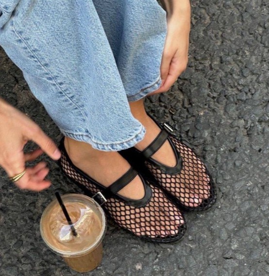 Прозрачные балетки стали одним из самых главных хитов лета 2024. Сначала они появились на подиумах, затем стали транслировать этот тренд инфлюенсеры. В итоге прозрачные балетки в сеточку можно считать обувью, обязательной к покупке. Конечно, многие думали, что такой супергорячий тренд явно не доживет до следующего лета. Так вот, они ошибались. Прозрачные балетки снова с нами. Они прошли процедуру модной «перезагрузки», так что смотрите и запоминайте, какие балетки актуальны летом 2025 года. Летом 2024 года в моде была крупная сетка. Теперь меняем ее на мелкую. Она виртуозно создает эффект дымки и смотрится очень необычно. Идеальные балетки 2025 — из очень мелкой сетки. Такой эксперимент дает простор для вариаций. Ищите — и обязательно найдете свою пару. Лето, ну куда же без цветов! Мелкая сетка расшитая цветами, смотрится сказочно: вы, как фея лугов и полей, будете парить в изящных туфельках. Шитье может быть как цветным, так и однотонным. Самый минималистичный вариант — балетки-полубо