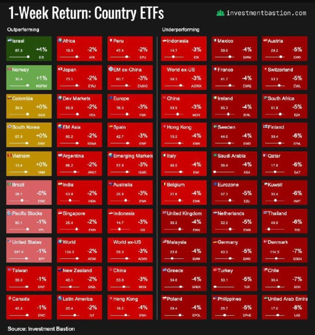 У фондов на акции Израиля лучшая доходность за неделю. @nemediatema