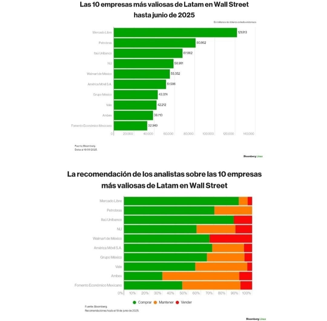 ⭐️🌎10 самых ценных латиноамериканских компаний на Уолл-стрит по состоянию на июнь 2025 года: MercadoLibre с рыночной капитализацией 121,813 млрд долл. США позиционируется как крупнейшая в регионе ℹ️ Bloomberg Line