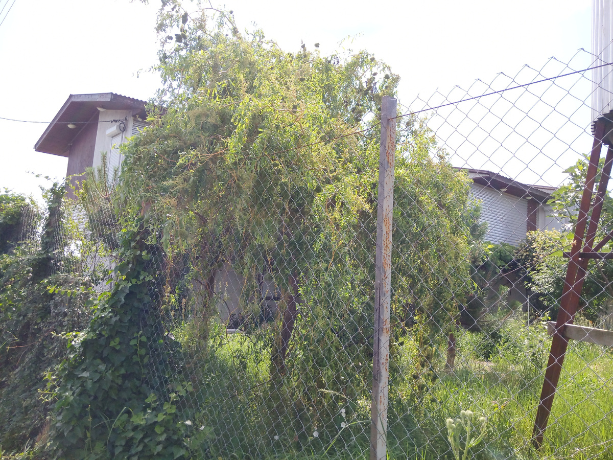 Вот как выглядит родная сестричка моих ив, которая ни разу не обрезалась. Она растёт на участке сына и у неё другие задачи. Ей надо прикрыть забор.