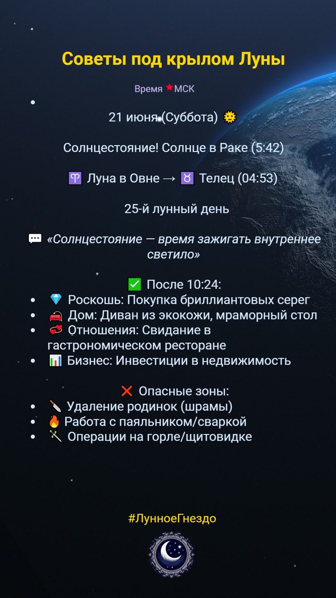 🕊️ 21.06.2025 — число дня: 9 «Энергия завершения, сострадания и духовного роста» Сегодня Вселенная напоминает: Не всё должно продолжаться вечно. Иногда отпускание — это победа. Число 9 приносит в этот день: ✔️ Завершение старых дел и ситуаций ✔️ Глубокую интуицию и духовную ясность ✔️ Силу прощения и сострадания ✔️ Призыв к служению и помощи другим 💎 Что делать: ✅ Подведи итоги — что пора завершить? ✅ Отпусти то, что больше не служит тебе ✅ Направь свою энергию во благо — даже маленькая доброта сегодня важна ⚠️ Осторожно: Избегай жертвенности и самопожертвования без меры. Ты можешь помочь другим, только сохранив баланс внутри себя. 💫 Сегодня день говорит: Закрой одну дверь — и следующая обязательно откроется.
