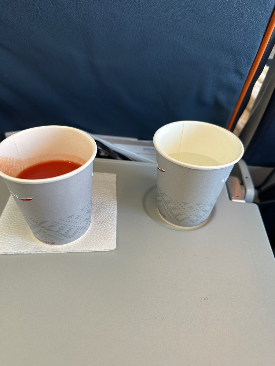 Аэрофлот , конечно, это всегда приятно). На коротком перелете Москва - Самара ( полтора часа полет), нам предложили напитки : вода , соки - апельсиновый, яблочный, томатный . А на перелете Самара - Доха ( Катар), который у нас вынужденно был), и кроме того сейчас переодеты увеличенны . Мы летели почти 7 часов от Самары , а если все вместе с момента как сели в Москве в самолет , это в 08:00 часов , а прилетели мы в Доху почти в 19))). На перелете в Доху мы были в самолете в обед, а должны были лететь утренним рейсом, поэтому и меню было всеравно завтрака(. Я больше люблю «вам курицу или мясо». Ну да ладно, меню- блинчики с джемом или омлет с сосиской из индейки подливкой томатной и стручковой фасолью. Я , конечно выбрала омлет и была довольна своим выбором . Сосиска и соус очень вкусные. Дочка сказала, что блины ей тоже понравились. И к этому еще набор - круассан, нарезка, пол яйца, помидорка черри и йогурт. Масло и шоколадка. Попить : чай, кофе, соки ( яблочный, томатный,